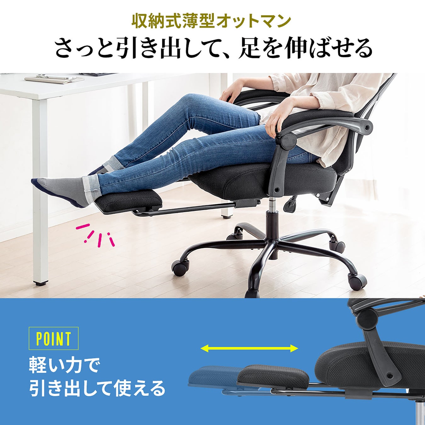 オットマンとリクライニング機能で足を伸ばして寝られるメッシュチェア 「150-SNCM033」が、サンワサプライ株式会社の直販サイト『サンワダイレクト』より発売しました。