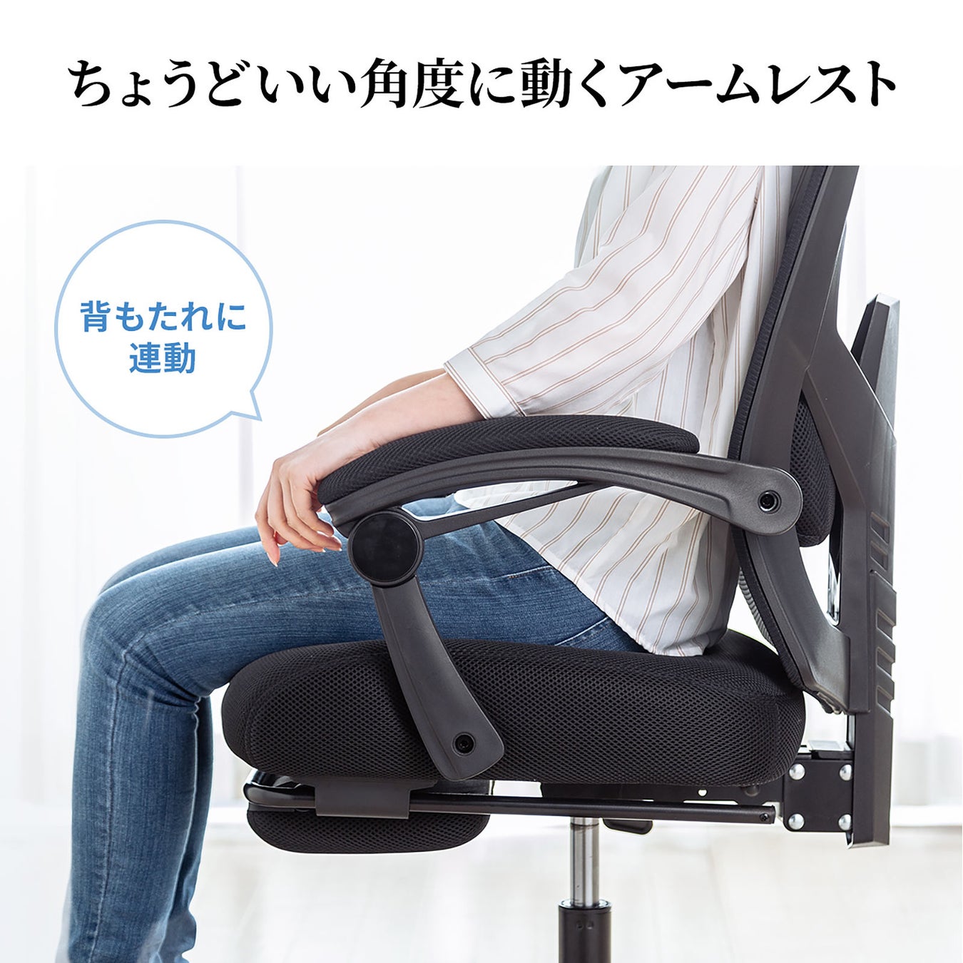 アームレストは背もたれと連動し、リクライニングした際に最適な位置になります。