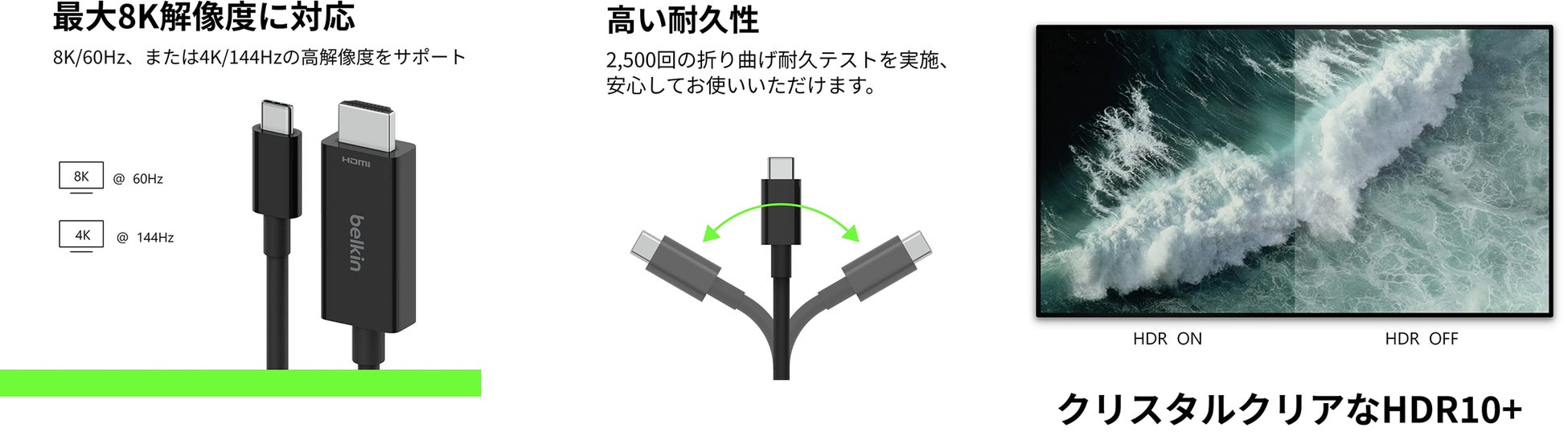 ベルキン株式会社は、最大8Kの解像度に対応したHDMIケーブル「Connect USB-C™ to HDMI 2.1ケーブル」と「Connect USB-C™ to HDMI 2.1アダプター」を1月24日(火)より販売中です。