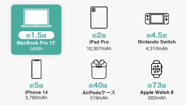 また、「SuperCam」は20,800mAhの大容量で、iPhone 14を約5.5回充電できます。