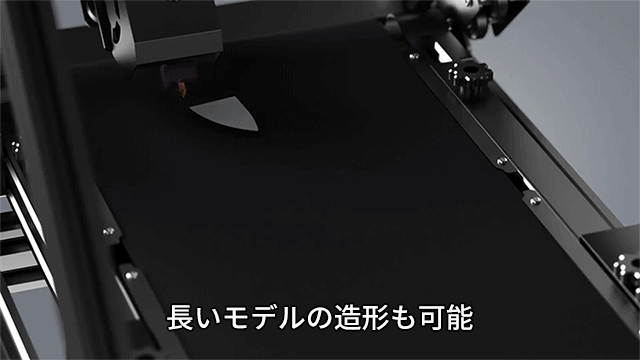 ボックス型の3Dプリンターでは不可能だった剣に似た模型など、長い形状の造形が容易に行えます。