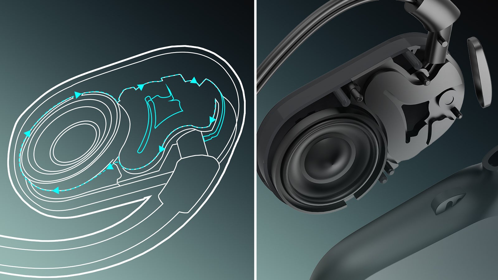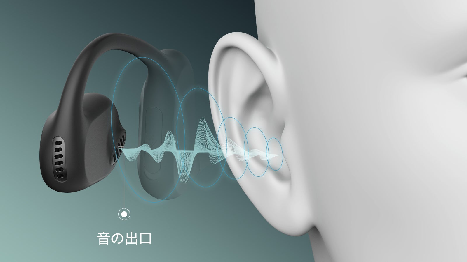 オープンイヤー型でも音質に妥協せず、16.2mm径の大口径振動板を採用。