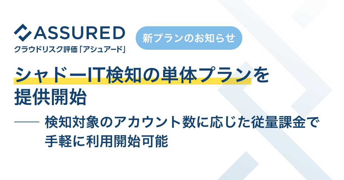 株式会社アシュアード(以下・アシュアード)は、このような課題を解決するために、クラウドリスク評価「Assured」にて、シャドーIT検知機能を単体で利用できる新プランの提供を開始しました。