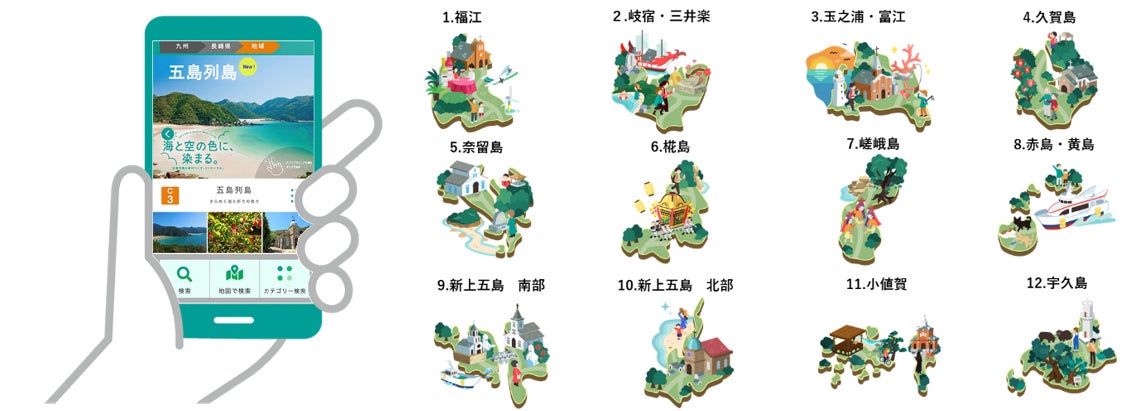 また、スマートフォンアプリでは、旅の計画から公共交通・観光施設・体験アクティビティの電子チケットの購入が可能。現在、五島列島の他に長崎市、佐世保・西九州エリアを展開しています。
