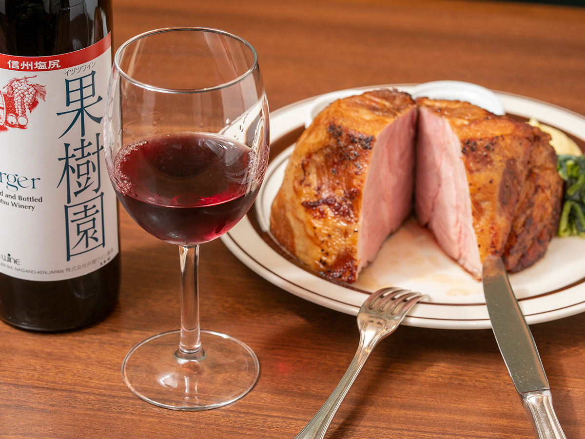 おすすめの「井筒ワイン」は長野産のワインでフルーティな香りで程良い酸味が特徴。肉との相性はバッチリ! とのこと。赤、白、ロゼからセレクト可能です。