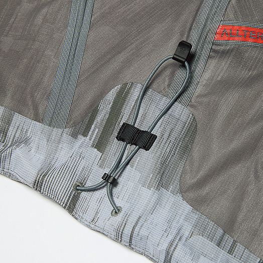 ▲裾の内側にドローコードを配備。風通しの良いゆったりとしたシルエットだが必要に応じて裾を絞ることも可能
