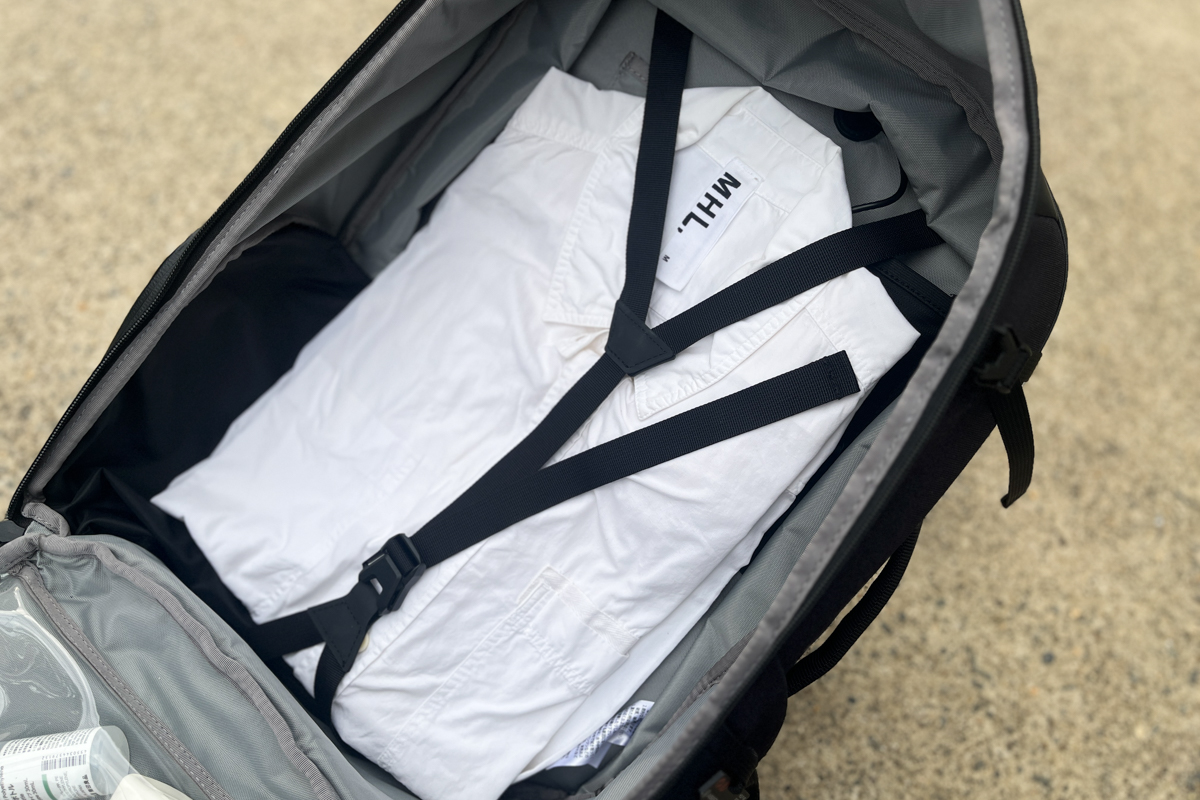 そして何よりも感心したのが、このバッグの収納構造。フロントルームにはPCやガジェットを、メインルームには洋服を…と自然に仕分けできるんです。