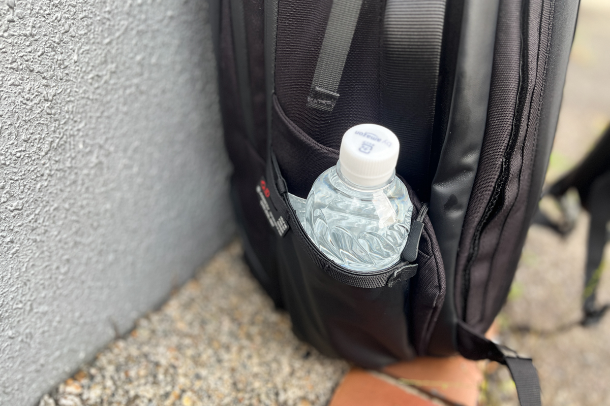 サイドには、内装がアルミ仕様のボトルポケットを搭載。保冷・保温効果があるので、飲み物を持ち歩くのにぴったりです。