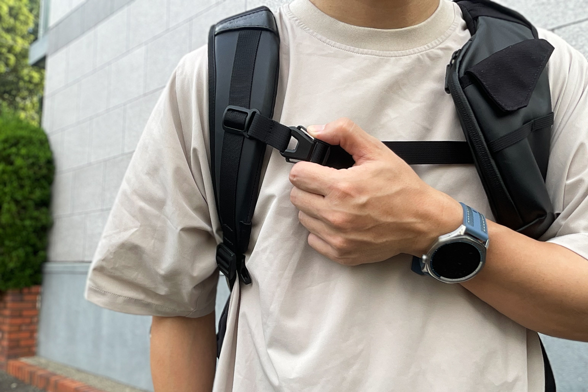 ▲ショルダーストラップには、フラップポケットを搭載