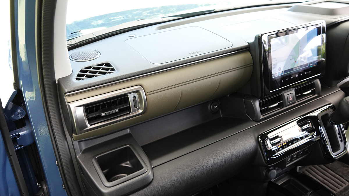 エアコン吹き出し口は従来型の丸デザインから、外観のイメージに合わせて角の取れた四角いデザインを採用。この処理はメーター部分やエアコン操作パネル、シフトノブ周りなどにも取り入れられています。