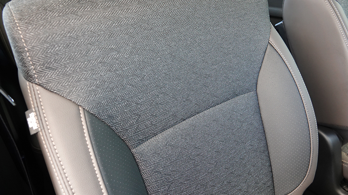 シートも従来型はパイピング処理や撥水加工を施したハニカム柄でアクティブな印象がありましたが、新型はヘリンボーン柄を採用しています。ヘリンボーンの生地だと一般的には柄を縦向きに使用しますが、新型クロスビーでは敢えて柄を横向きに配置しているのが面白いところ。これは車内の広がり感を狙った演出だそう。
