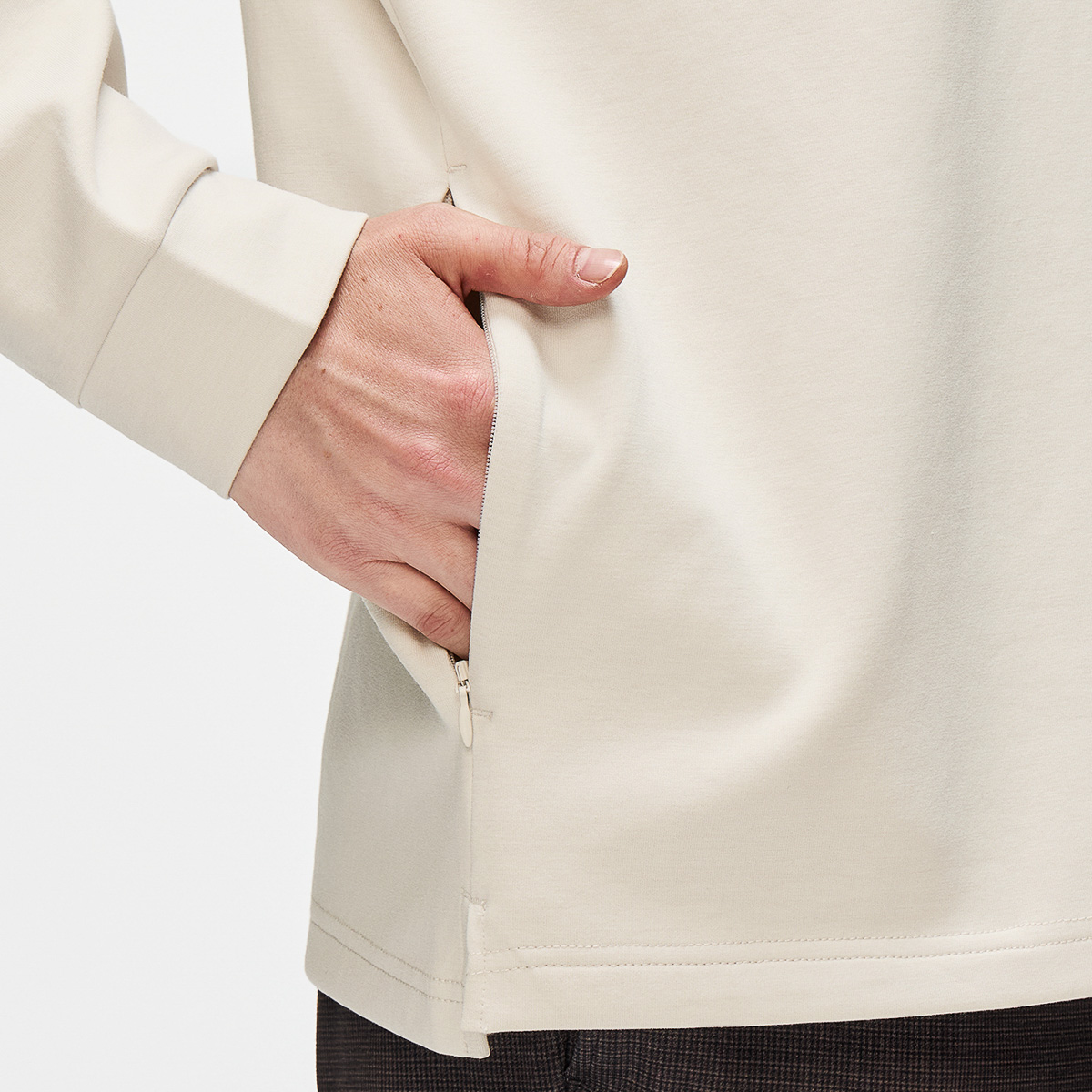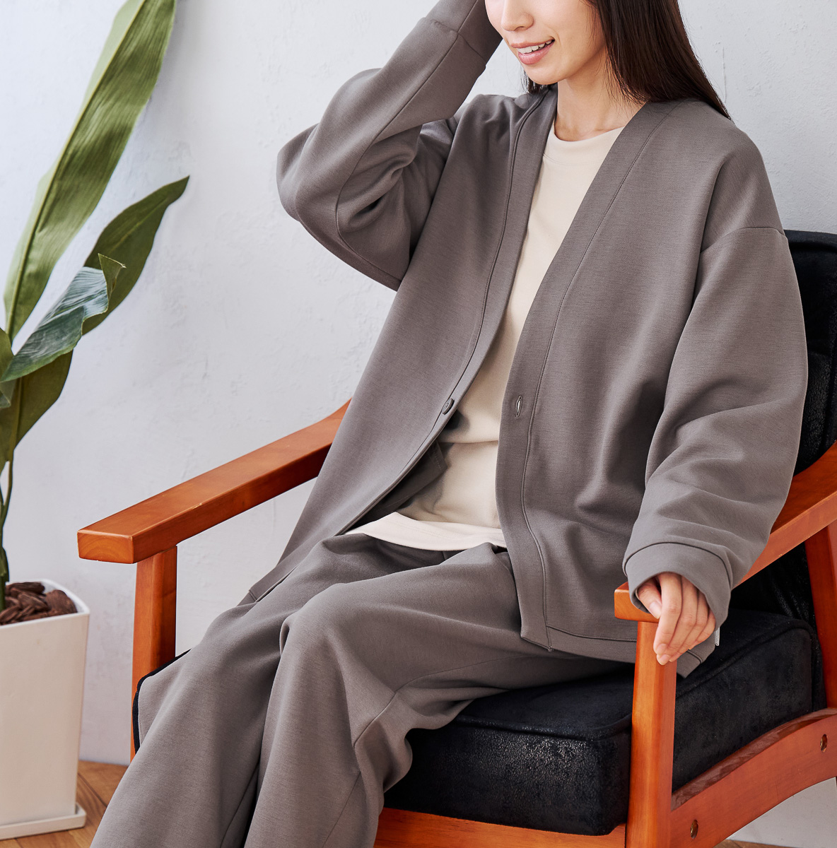 今回登場した「ラウンジシリーズ」では、ふだんから使いやすいシンプルなデザイン、単品でもセットアップでも使える高い着回し力、小物の収納に役立つポケットなどにこだわり、自宅から外出先まで、さまざまなシーンに活躍するこだわりが配されています。