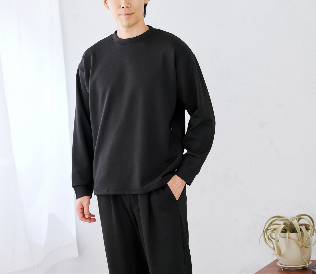 リカバリーウエアは長時間着用することで効果が体感しやすくなるため、着心地にもこだわりが。素材には、適度な厚さでハリ感があり、動きに合わせてしなやかに伸びるストレッチ性に優れた“ポンチ素材”を採用。肌触りがよく、なめらかな触り心地で、長時間の着用でもストレスを感じにくい仕様です。