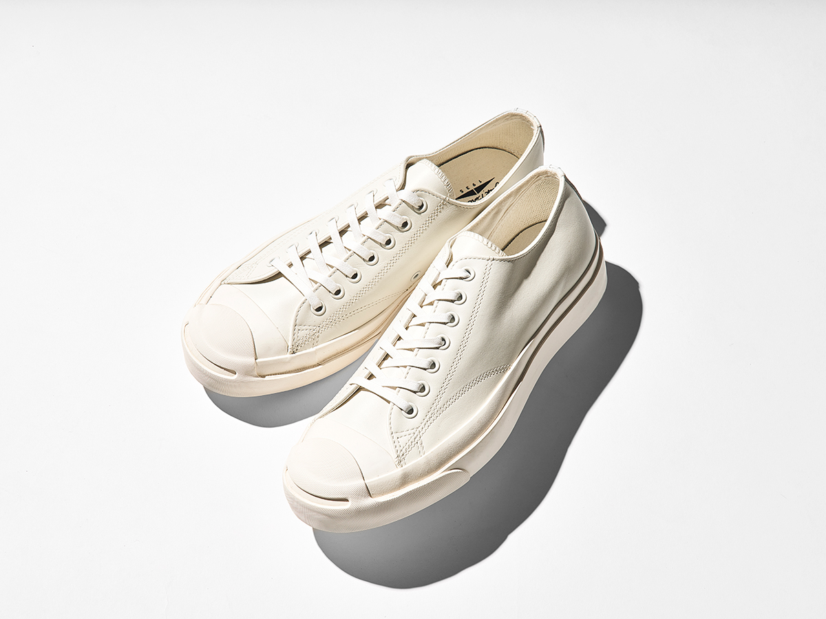 通常、「ジャックパーセル」はキャンバス地ですがこちらはアッパーにレザーを採用した最上位モデル。白が持つイメージと相まってより洗練された表情です。機能面もこだわって作られており、新開発のアナトミカルラストを採用しているためフィット感は抜群。通気性の良いオーソライトインソールを搭載し、足蒸れも防ぎます。