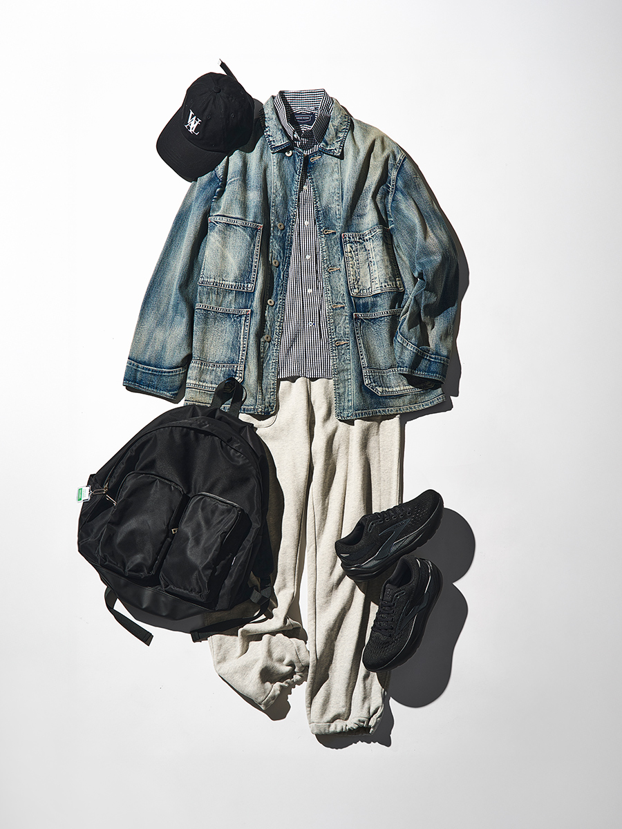 ▲スニーカー1万8700円/ニューバランス(ニューバランスジャパンお客様相談室)、スウェット2万900円、キャップ1万7809円/ともにジャクソンマティス(ヒラク PR)、シャツ9900円/ビーミング(ビーミング by ビームス ららぽーと東京ベイ店)、パンツ1万7600円/リーバイス(リーバイ・ストラウス ジャパン)、バッグ1万1000円/エル・エル・ビーン(エル・エル・ビーンカスタマーサービスセンター)