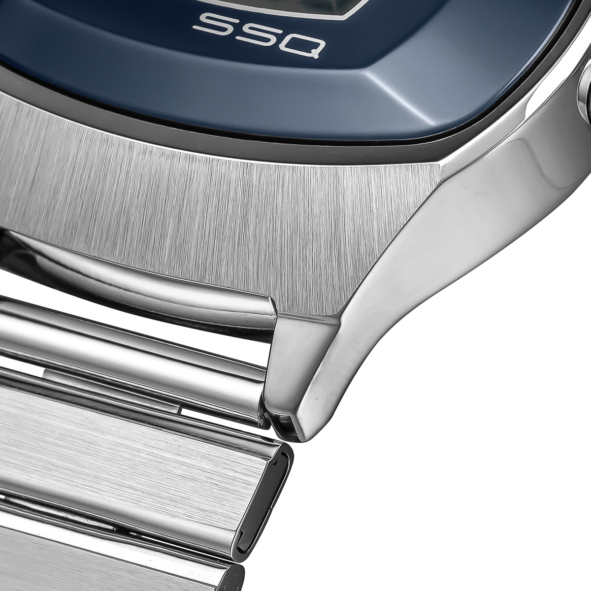 一方、約50年ぶり&初復刻版である「SSQ Digital Reissue」は「SSQ」の特徴的なビジュアルに機能はそのままに5気圧防水を加えたモデル。表示は多機能が当たり前の現代において日付と時刻(時分・秒)のみと驚くほどシンプル! これはあえてのことなんだとか。ただ単に見た目や発売年だけを再現するだけでなく個性や時代背景もきっちり表現したい、そんな同ブランドの思いが込められているんですね。