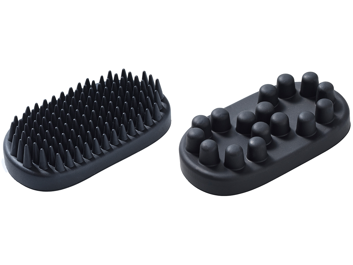 さて、そのパワフルさの秘密は独特な形状にあります。一般的なEMSヘッドブラシは全体が丸っこく、おおよそ4本の小ぶりなブラシが付いていますがこちらは縦に長いデザイン。両端に付いた2本の大きなブラシが頭皮をしっかりと掴むため、ワシワシと力強く揉み洗いできるわけです。