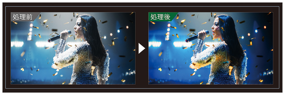 ▲AIシーン高画質PROが映像やシーンを自動判別し、表情や細部まで精細に描き臨場感をリアルに再現してくれる、うれしい機能付き