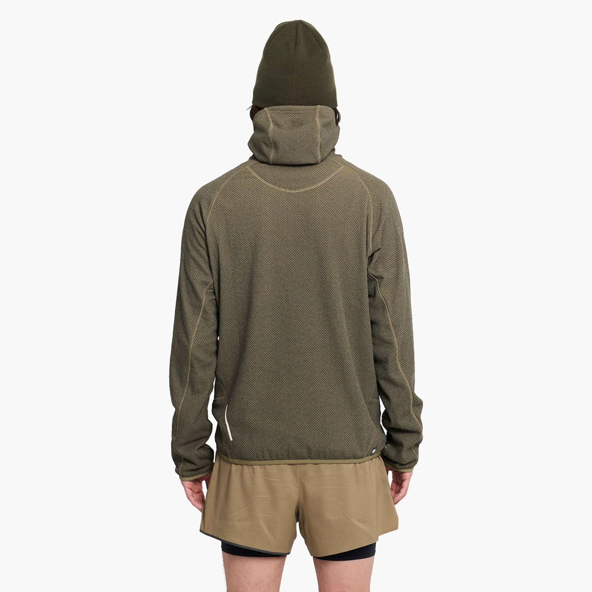 最後にもう1つ印象的なのが耐久性。通気性を重視するアクティブインサレーションは、どうしても繊維がゆるく、摩耗に弱い印象があります。その点、「M IBTHoody」は、リサイクルポリエステルにカーボンを織り込むことで、軽さと柔らかさを保ちながらも強度をしっかり確保。軽量インサレーション特有の心もとない印象がなく、日常のランやトレイルはもちろん、ザックを背負ってのハイクでも安心して使えそう。