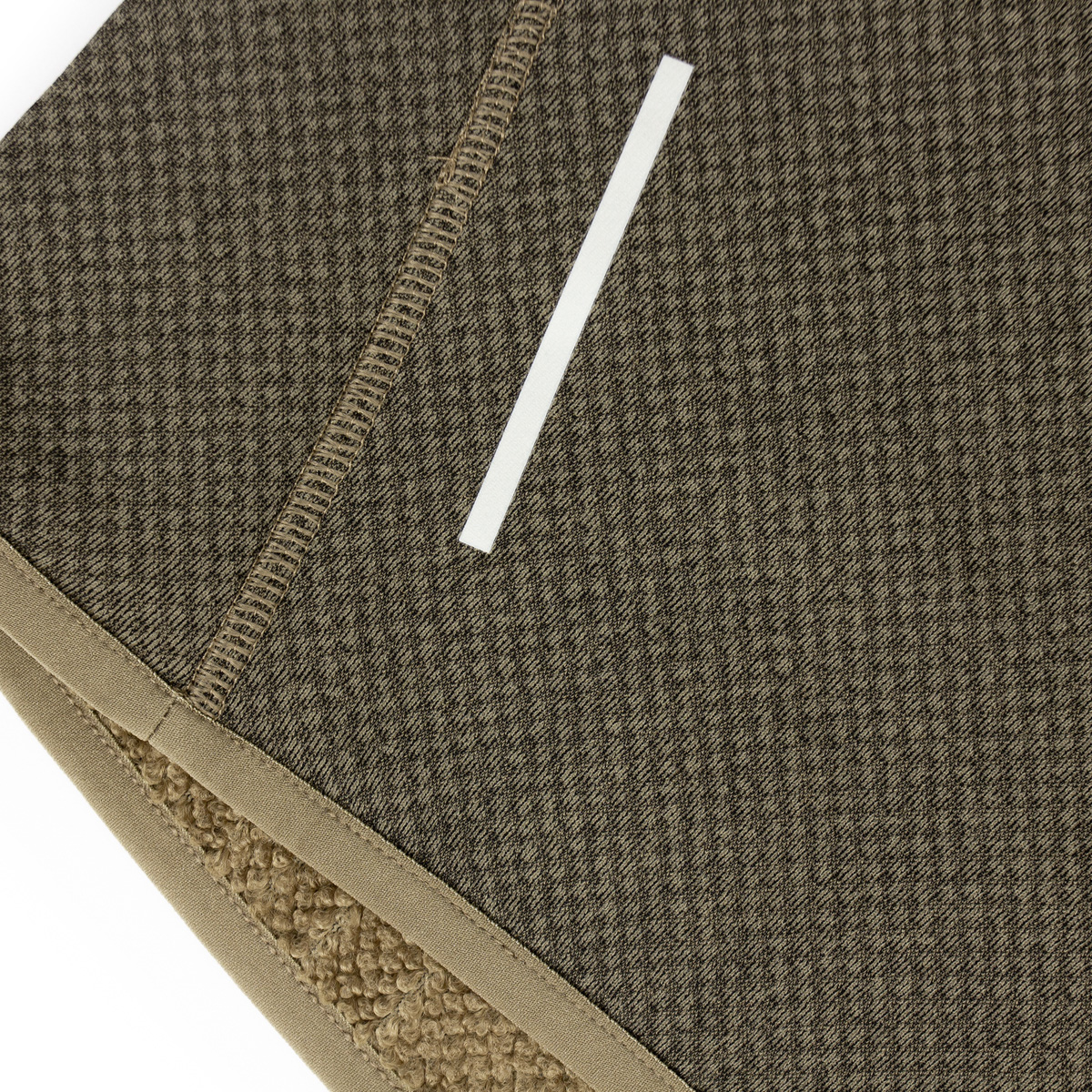 最大の特徴は、Ciele独自の素材「brushed COOLmatic | EXP DIAMAfleece lite」。リサイクルポリエステルに33%のカーボンファイバーを織り込んだ生地で、軽さと柔らかさを保ちながら機能性、耐久性を高めたモノ。カーボンファイバーが汗をすばやく吸い上げて拡散し、湿気を逃がしながら体温を整える“温度調整素材”として働くのですが、ここが他のアクティブインサレーションとの明確かつ大きな違いです。