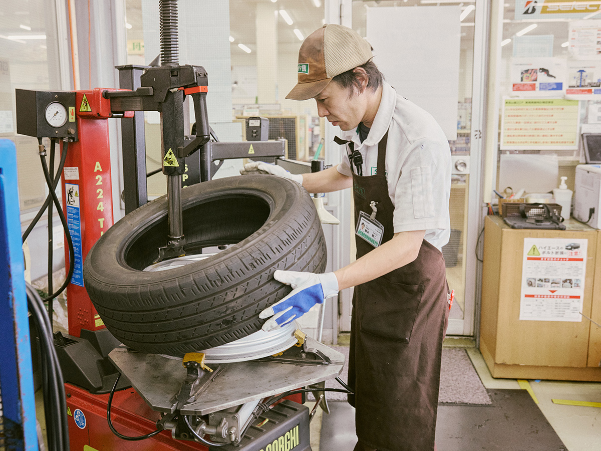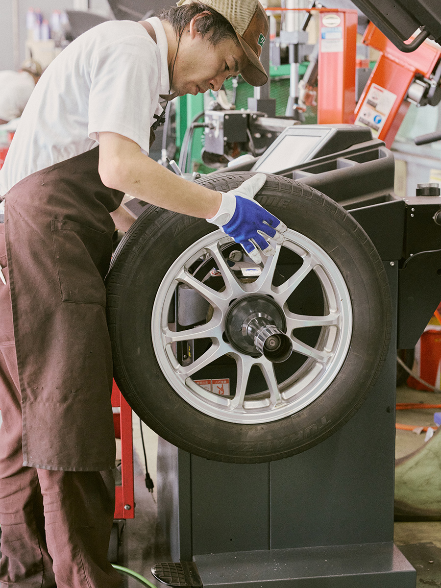 2001年に入社し、店長業務はおよそ10年。若い頃からクルマ好きで、自分の愛車をイジれたら…という思いからタイヤ館へ。ユーザーのニーズに寄り添うメンテナンスの提案がモットー
