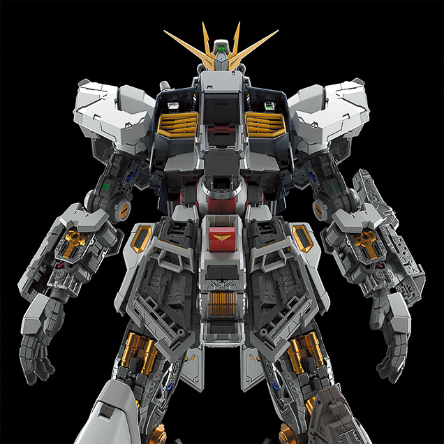 ▲後ろ姿もこだわりの塗装でばえる! 背中の飛行パネルは開閉式。エフェクトパーツのほか、アームミサイル、ショルダーミサイルなどオプションも充実
