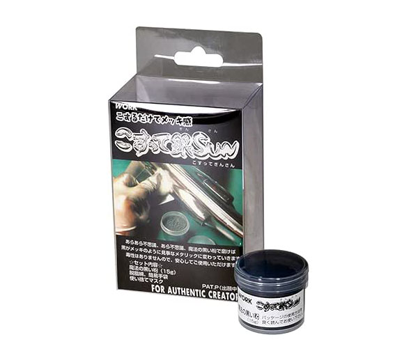 ▲ウェーブ「こすって銀san」(1980円) ツヤありの下地塗装面に、セットに含まれる魔法の黒い粉を柔らかな布や脱脂綿でこするだけでメッキ調の金属管が再現できる。ただし素手で触れると塗布面がくすんでしまう。上から塗装ができないので要注意
