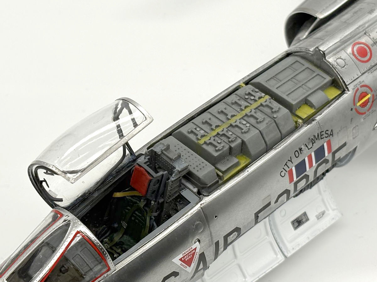 ▲キットはコクピット後部の電子兵装ベイも再現されている。キャノピーは現用機では珍しい横開き(手動!)となっている