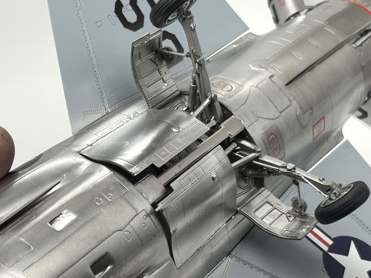 こうしたナチュラルメタルな機体は、スケールモデル的に見栄えが良いこともあって人気があります。当然ながらナチュラルメタルの質感は塗装で再現します。無塗装の金属を塗装で表現することになるワケですね。とはいうものの、この無塗装ナチュラルメタルというヤツがなかなかに難題で、再現に悩まされたモデラーは多いんです。