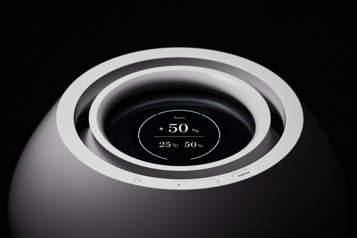 花器や壺に着想を得て、空間に自然になじむようデザインされた気化式加湿器で、2013年の発売時に、その独特なフォルムと直接水を注ぐなど直感的な操作法で話題となりました。登場から12年の時を経て11月上旬に発売となる新モデルは、高精細ディスプレイを採用。より美しく、使いやすくアップデートしています。