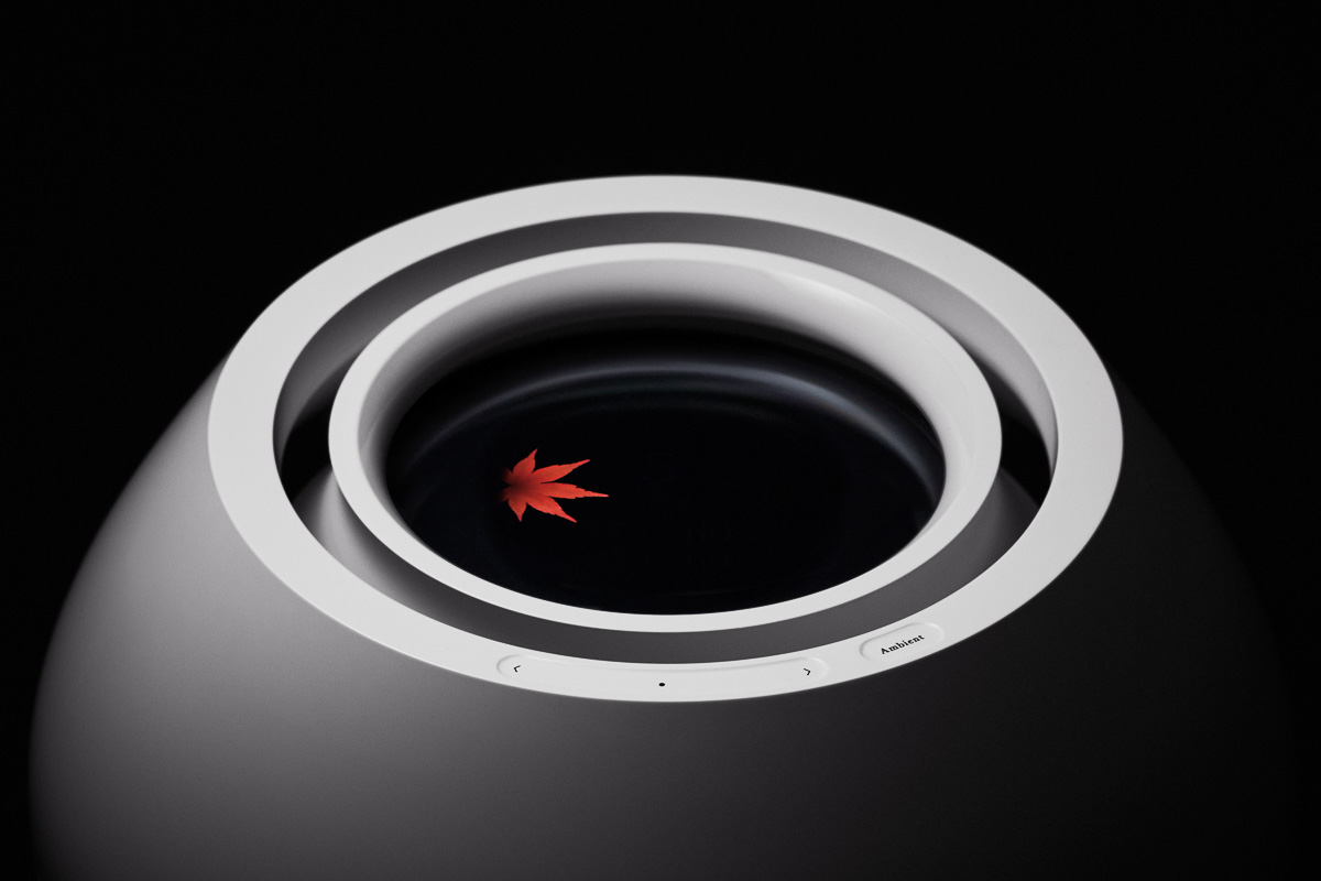 再生される環境音は3種類。秋の夜長を彷彿させる静かな雨の音とコオロギの鳴き声が流れる「Long Rain」、手漕ぎボートのオールで水面を叩く「Infinity Boat」、さらに日本の原風景をイメージさせるせせらぎや虫の声「Satoyama」です。自然がテーマのサウンドとディスプレイの映像、そして柔らかな光でリラックス。ゆったりと眠りたい時はもちろん、仕事や作業に集中したいときのBGMにもぴったりです。