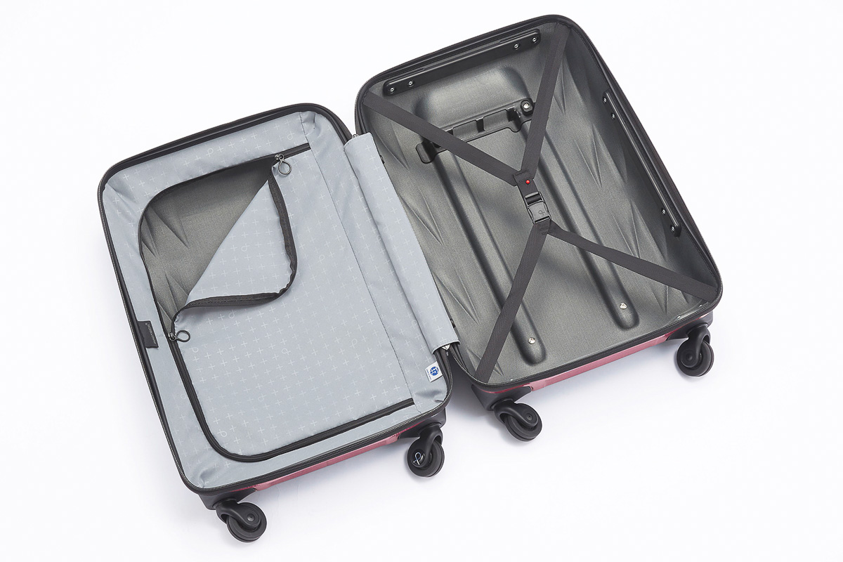 「Tri-Air」は、本体に軽さと丈夫さを両立した複合素材“フレックスシェル”をボディに採用した新作スーツケース。水より比重の軽いポリプロピレン樹脂を原料とし、一般的な樹脂素材に比べ極めて軽量なことが特徴です。軽さに加え、注目したいのがその堅牢さ。特殊製法で優れた剛性と耐衝撃性を実現し、過酷な温度環境下でも安定した性能を発揮してくれます。