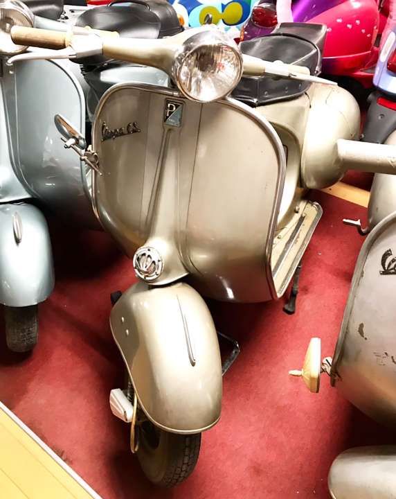 1958年頃にイタリアから初めて日本に新車のベスパを輸入販売した芙蓉貿易という会社が実際に販売したモデル、150GS(vs5)。こんなヒストリックなレアモデルもかなり綺麗な状態で保管されていました。