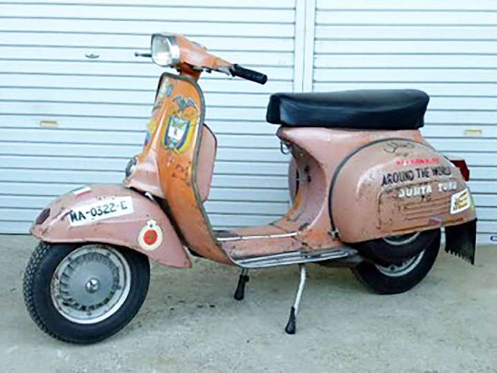 ▲ベスパでの世界一周を目指したツアラーが計画を変更し、日本に置いていったベスパ