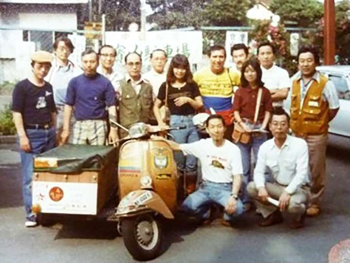 ▲日本に滞在していた際の写真。車両脇のサイドカーは、ヤマハRD400に移設され、そのままツアラーは無事に旅を終えたそうです