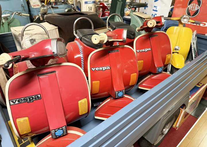 ▲ガレージ内にある子ども用のベスパ群。こんなふうに世界中でベスパは老若男女に愛されてきました