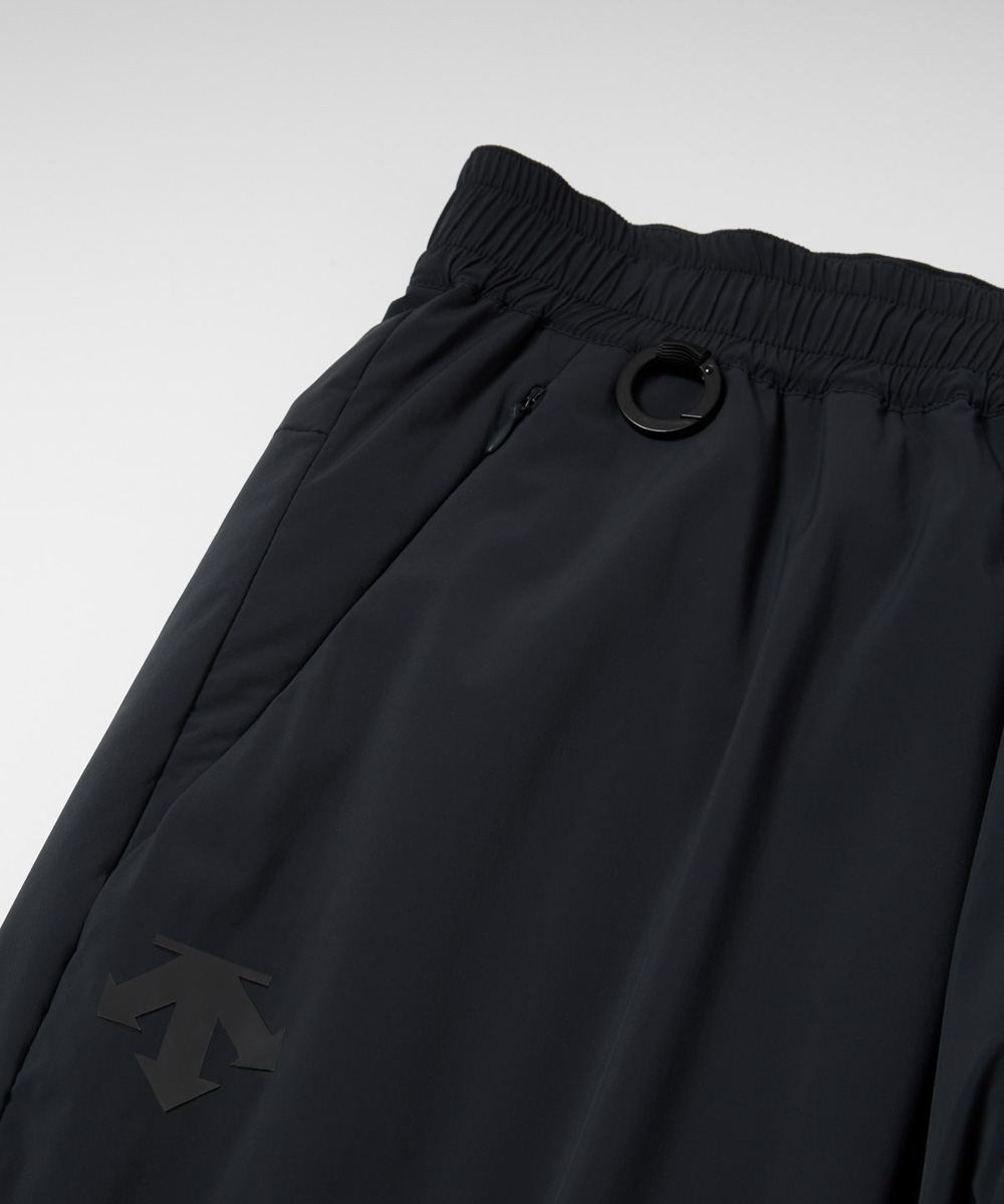 パンツは腰回りがリブ仕様になっているため着脱のスムーズさとラクさを両立。ウエスト部分に丸カンを装備。ポケット内側は起毛仕様で手を温められます。