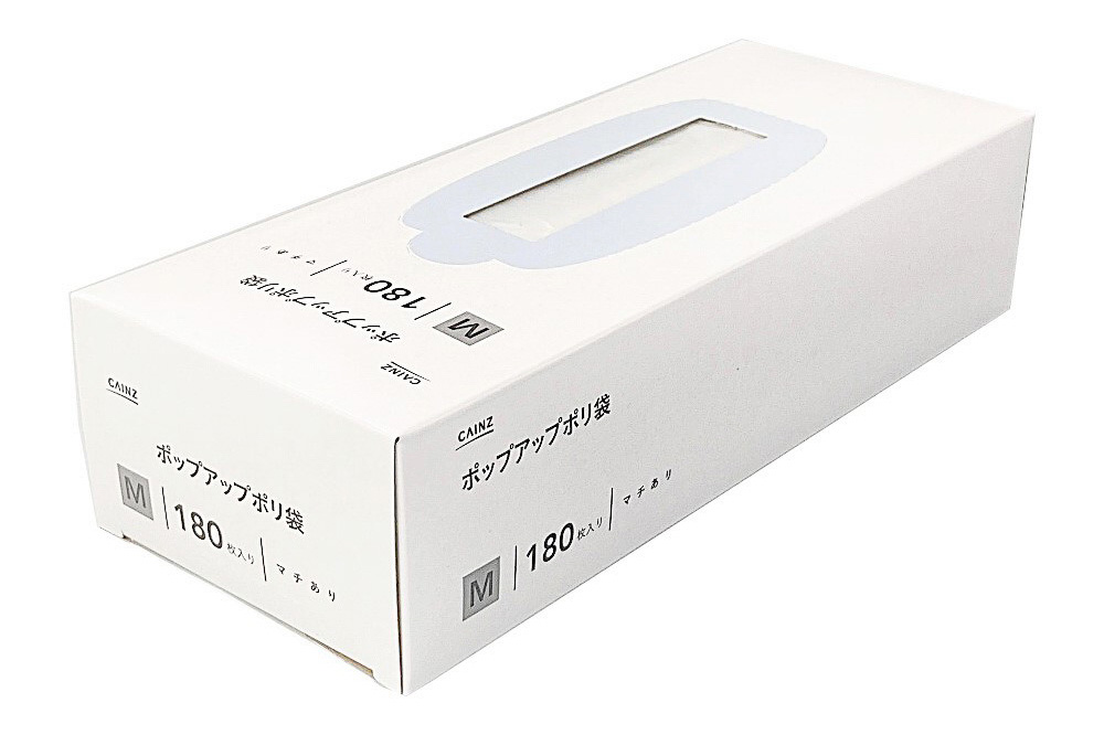 「ポップアップポリ袋マチ付 Mサイズ 180枚」(198円)