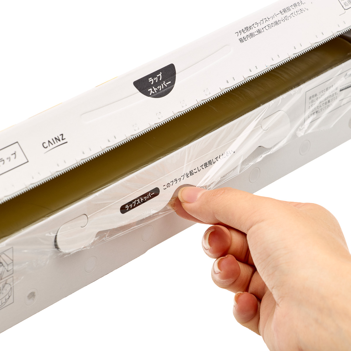 1日平均1万個売れてる(※)という超人気商品。冷凍保存から電子レンジ加熱まで使え、ピタッと張り付くので液体もこぼれにくい。親指の位置のエンボス加工により、最後まで切りやすい。