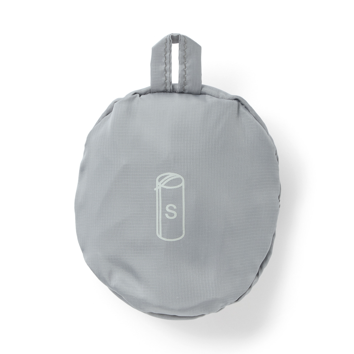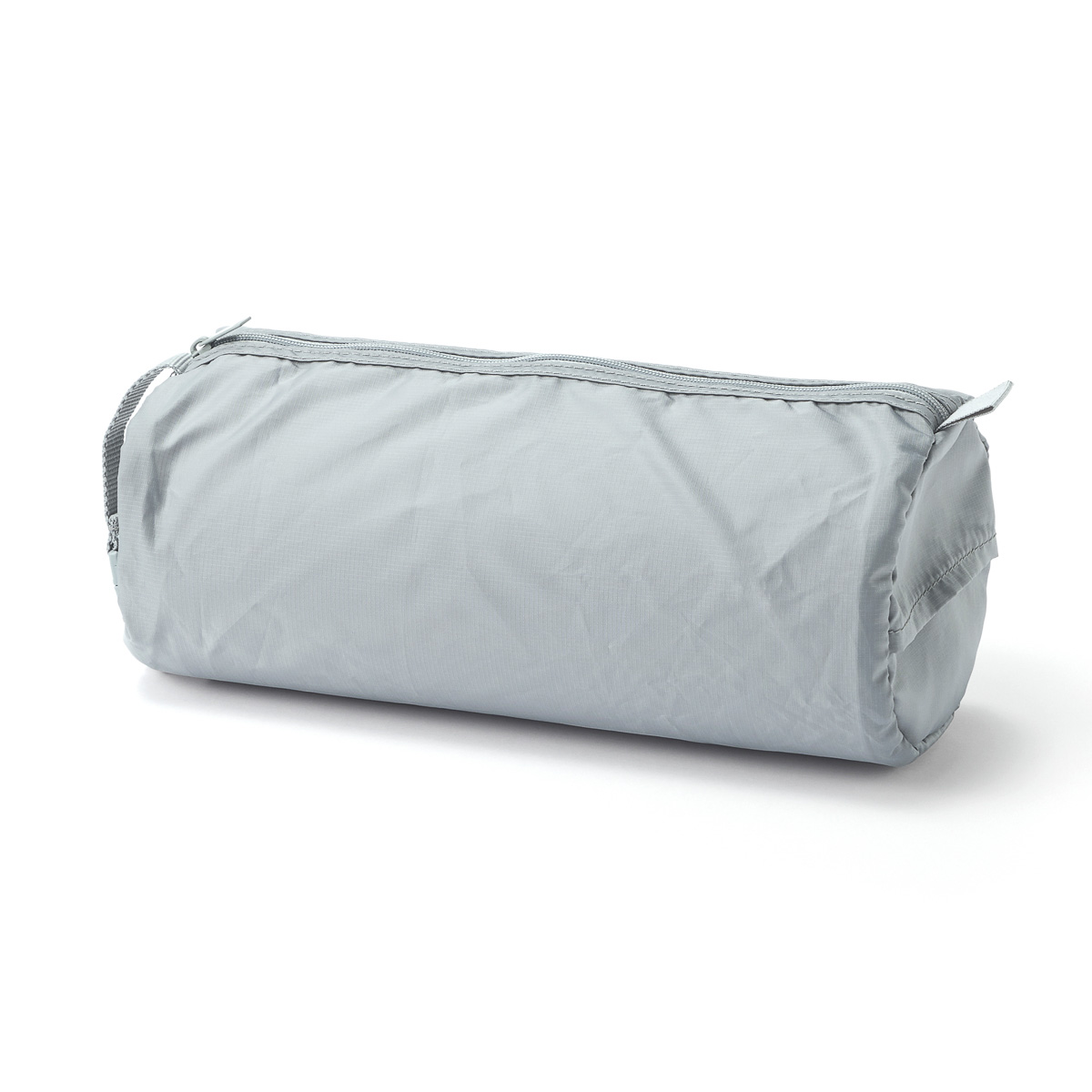 キャリーケースの隙間を埋めるのにちょうど良い筒型。2色展開で、Sサイズ、Mサイズがあり、コンパクトに畳むことができて便利です(関根さん)