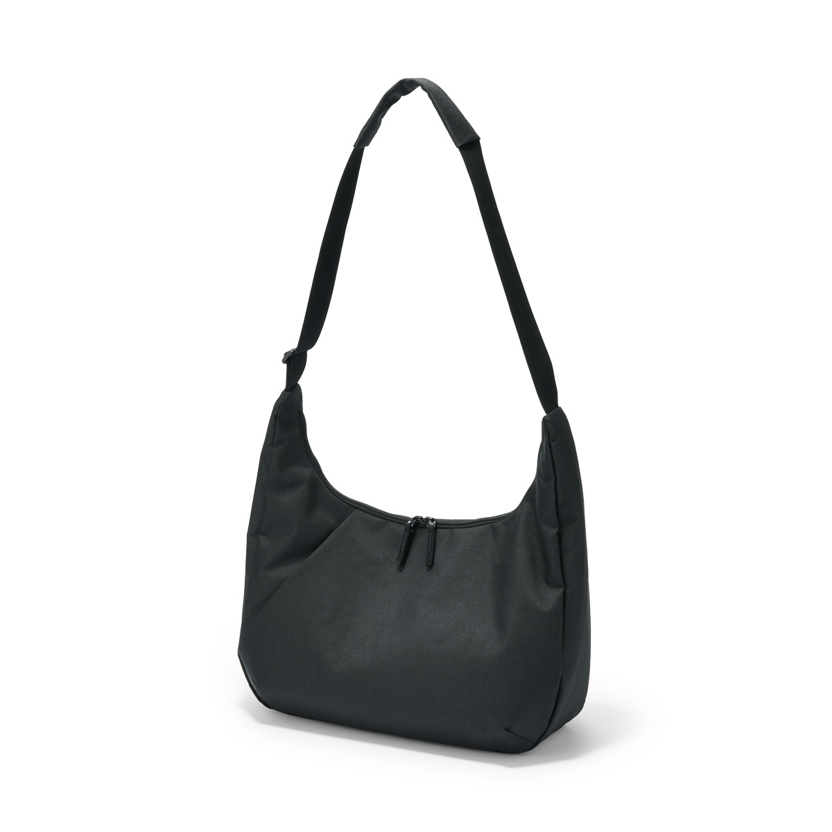 ベルトの長さを調節することで、手提げとしても使えるワンショルダーバッグ。生地は適度なハリとコシ感があるポリエステル素材で、撥水加工を施されている。H28.5×W40×D12cm