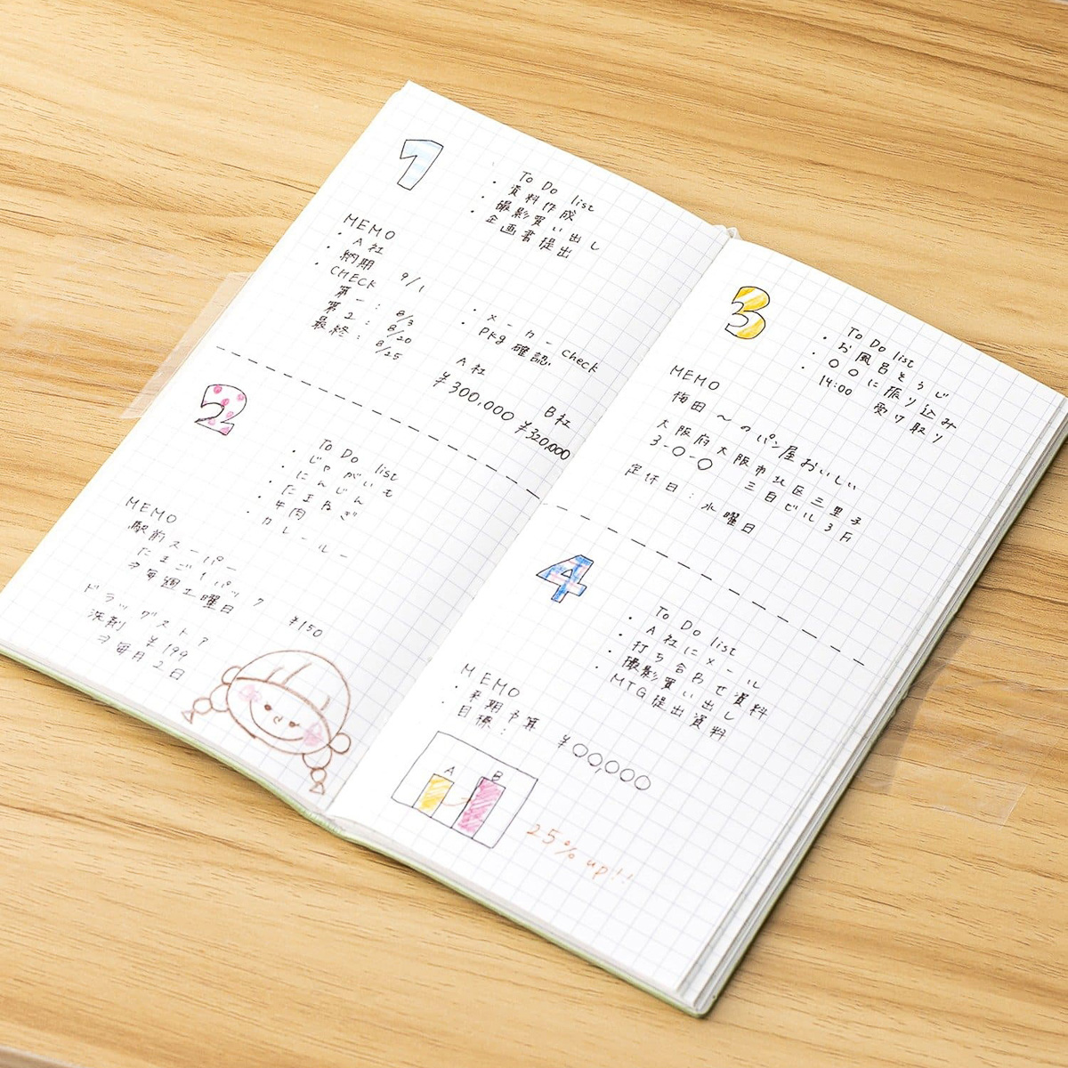 スリムなサイズ感で持ち運びやすく、シンプルなデザインで使いやすいです。方眼のページもあるので自由にメモ書きできます(小林さん)