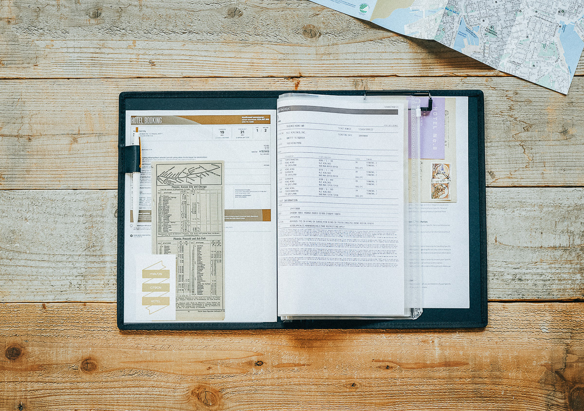 老舗文具メーカー・キングジムとの共同開発で生まれたアイテム。チャックポケットやクリアファイル付きで使い勝手がよく、例えば進行中のプロジェクトの書類整理などにもいい。
