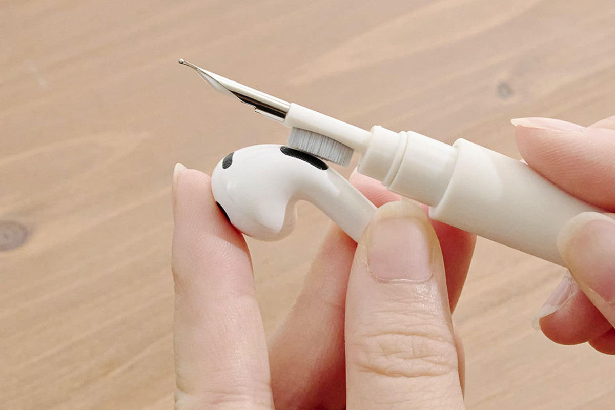 植毛スポンジ、ブラシヘッド、金属スティックの3WAY仕様の掃除ツール。イヤホンやイヤホンケース、スマホなど隙間の掃除に最適。コンパクトなペン型なので常に携帯できる。