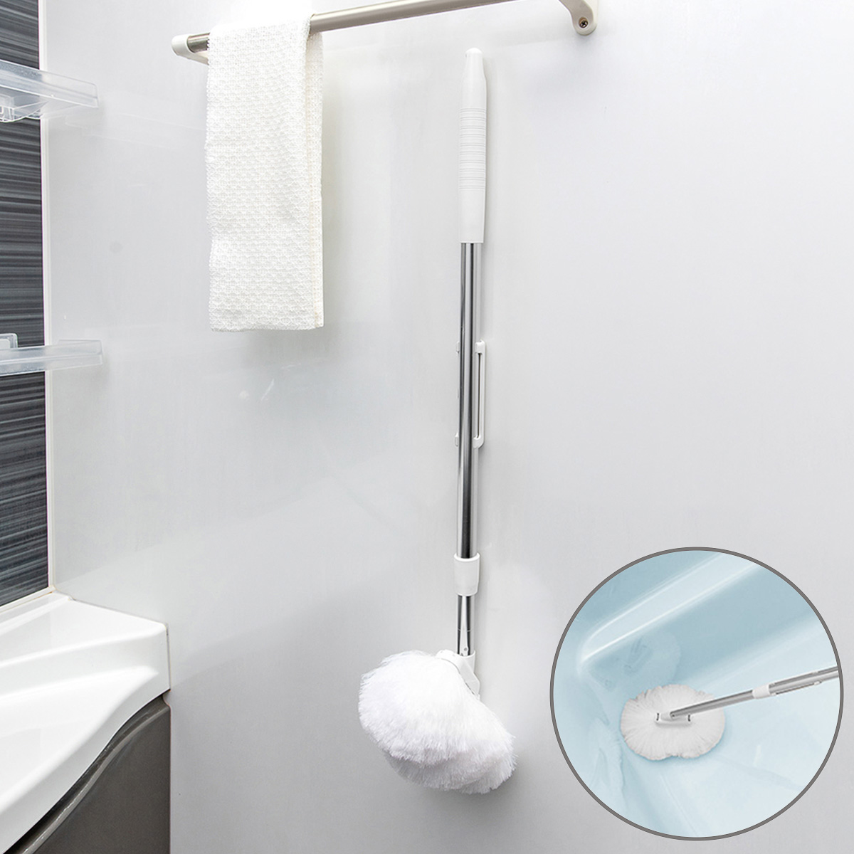 浴槽はもちろん、蛇口まわりや壁の掃除にも便利なブラシ。柄が長いので浴槽の床や天井の掃除もラク。洗剤を付けなくても水だけで汚れが落ちる。壁にくっつくので収納場所にも困らない。