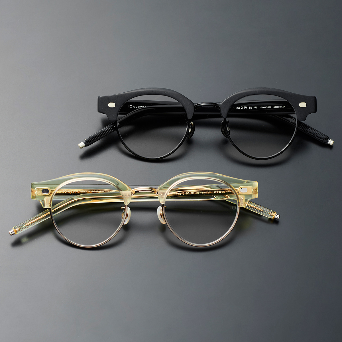 数多くのブランドの中でも注目されるのが、デザイナー中川浩孝氏による10 eyevan。“美しい道具”を理念に3年以上かけて開発された限定モデル「no.3 IV BR」は、知的で大人っぽいボストン型を採用。墨や漆器を思わせる深い黒の「INK×Lacquer Black」と、蜂蜜のように柔らかな「HONEY」の2色展開です。