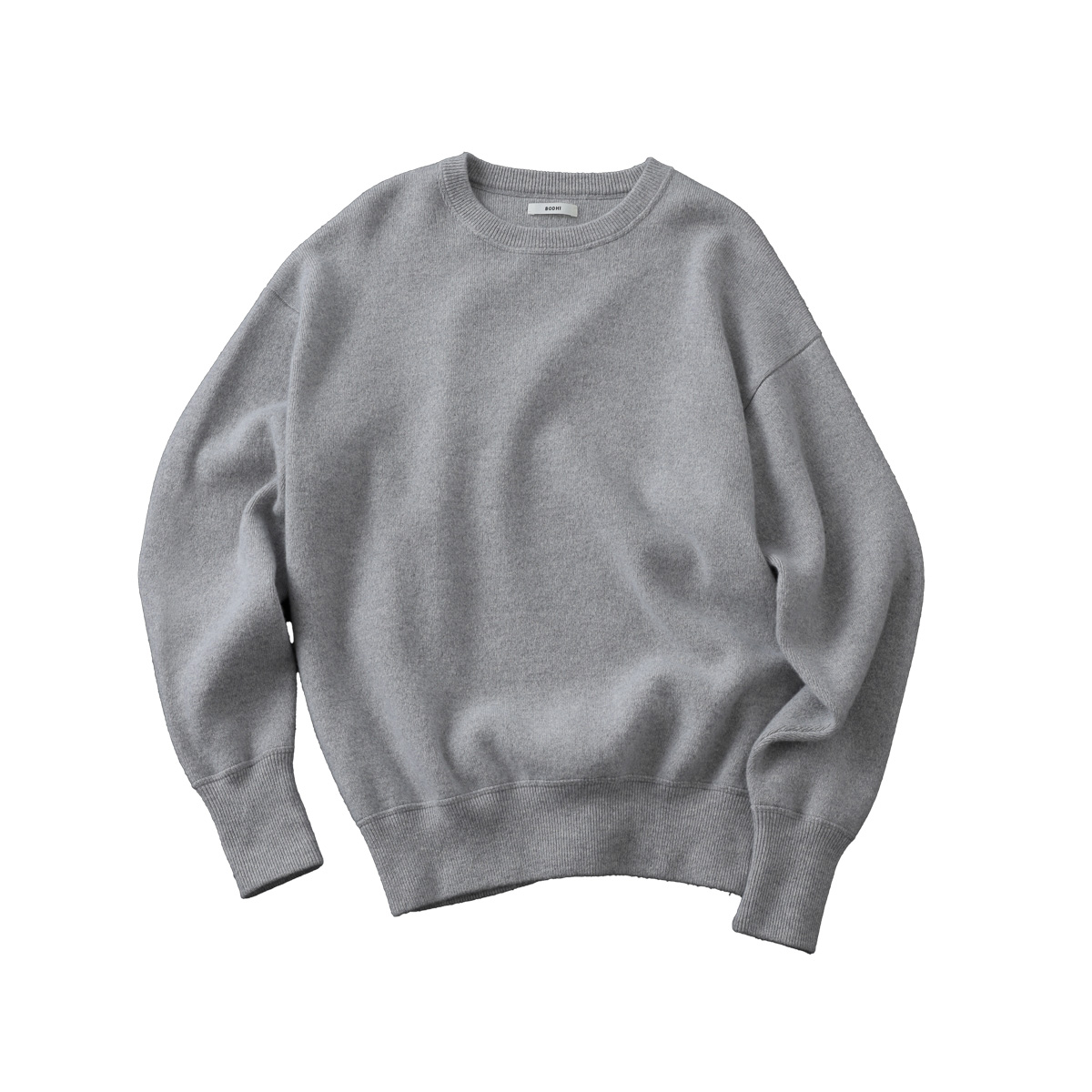 BODHI(ボーディ)は、天然素材とクラフトマンシップにこだわるジャパンブランド。カシミヤの上質な風合いを日常着へと昇華するその哲学を象徴するのが、今回フィーチャーする「HEAVYWEIGHT CREW」だ。重厚な編み地と軽快な着心地を両立し、“ニットでもスウェットでもない”唯一の存在に仕上げている。