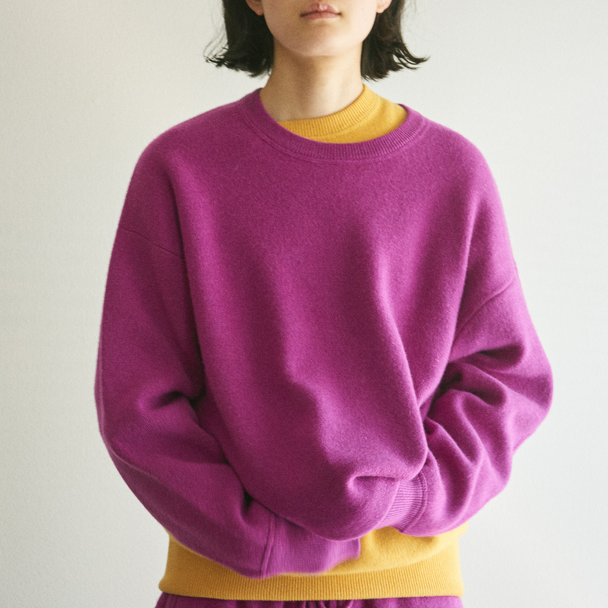 上質なカシミヤを贅沢に編み上げ、スウェットの気軽さとニットの上品さを兼ね備えています。袖や裾のリブには強めのテンションをかけ、スタンダードなシルエットと相まって時代に左右されないデザインになっています(alpha Brand Consulting PR Communications 稲垣大貴さん)