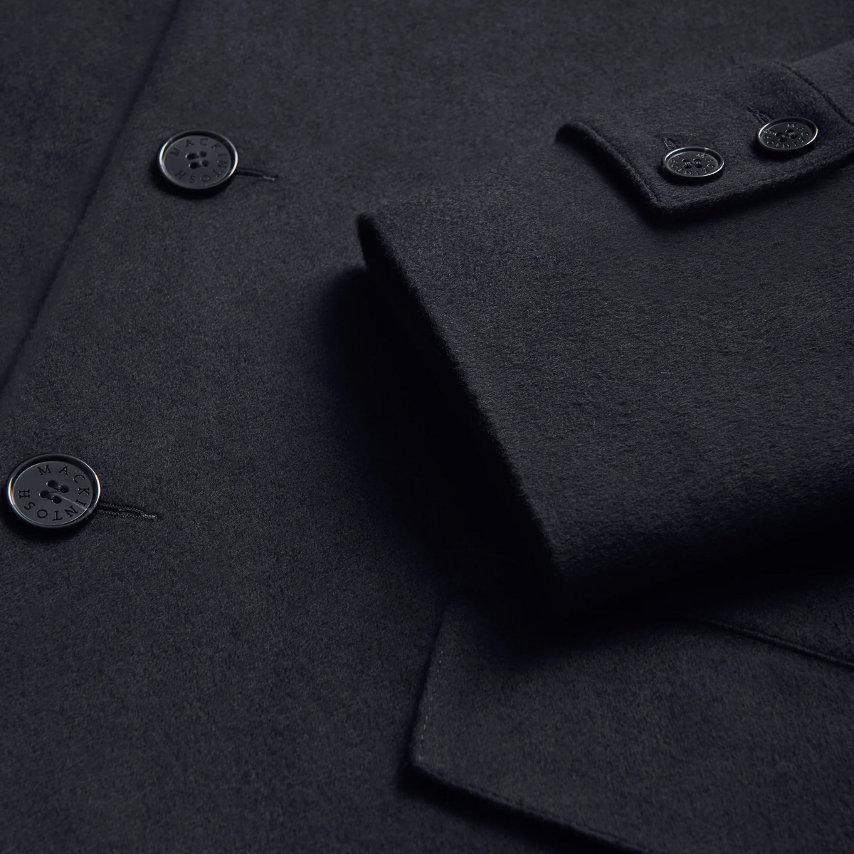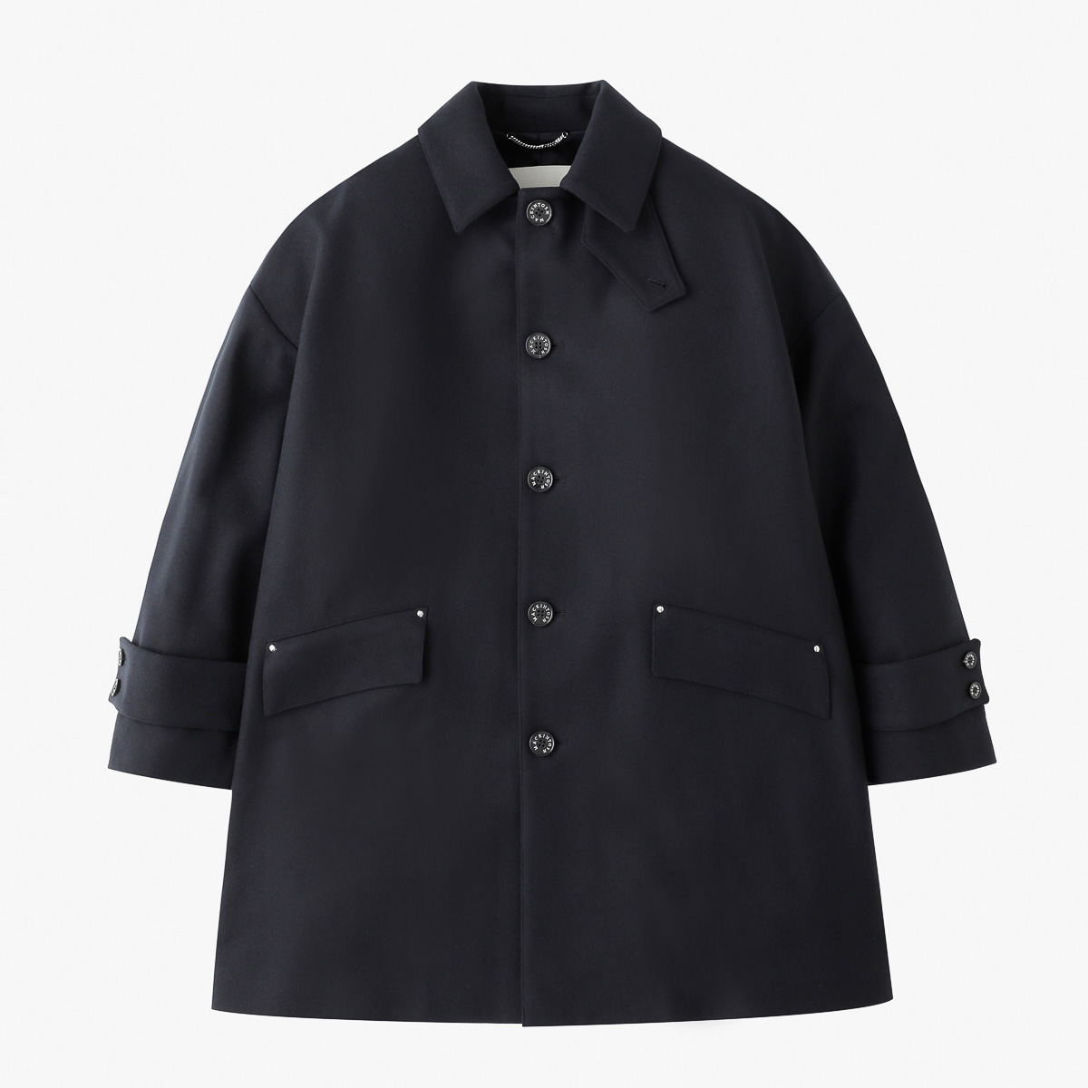 数々の名コートを手掛けてきたマッキントッシュの中でも、「ハンビー」は、ゆるやかに裾へ広がる“Aライン”シルエットで新しい定番を築いたモデル。ゆとりのある肩回りと、羽織るだけで形が決まる美しいバランスが魅力だ。リベット補強のフラップポケットや、防風性を高めるチンタブなど、細部の機能美も見逃せない。