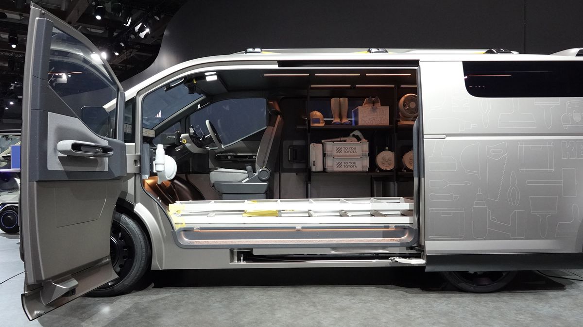 そんなハイエースの次世代コンセプトモデルが「ジャパンモビリティショー2025」でワールド・プレミアされました。ハイエースのアイデンティティである箱型であることに変わりはありませんが、フロントノーズがある1.5BOXスタイルになっています。